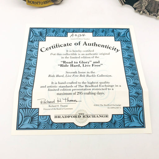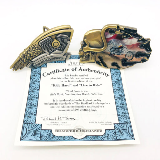 View full detailsProduct Condition: Used Product Details: These belt buckles are from The Bradford Exchange "Ride Hard, Live Free" belt buckle collection. Limit...
