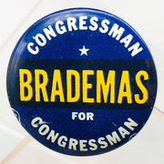 Congressman John Brademas Button Pin 1.25" Indiana Politician Campaign Blue 4