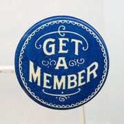 Get A Member Button Pinback .75" American Art Works Coshocton Ohio Blue