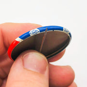 Product Condition Details: Pin is in good condition, but does have marks/scuffs/scratches on front/back. Back also has some rust/corrosion. Please see photos.