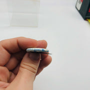 Product Condition Details: Button is in good condition, but does have wear and tear on front/sides - many scuffs/scratches on front. Some scratches/scuffs, discoloration and fading. Back has some wear and corrosion. Please see photos.