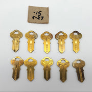 10x Chicago Lock Co. K-27 Key Blanks W Milling Brass USA Made Vintage NOS