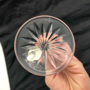 Product Condition Details:  Wine goblet is in great condition, and has been kept stored away "safely" for many years. Some light lint/dust on the glass. The silver coloring around the rim is worn and starting to fade - missing slightly on some sides. Signature is just starting to fade. Minor wear/fading from use and age. Sticker may be off or missing. Please see pictures for more details.