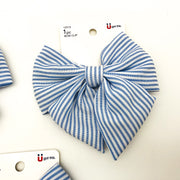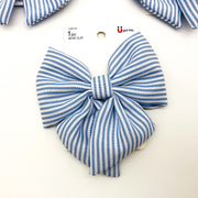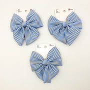 3-Piece Scunci Bow Hair Clip Blue Striped Lightweight Large Summer Wear 12513