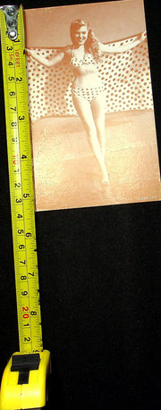 50s Pin Up Promo Photo Card Woman Bikini Swimsuit Polka Dot Towel Beach Worn