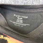 Product Condition Details: 22.5" Pit to Pit, 8.5" Sleeve, 26.5" Length. Tshirt is in good condition, but does show wear and washes. Some fading/discoloration all over - distressed. Neck and armpits are showing discoloration. Please see photos.