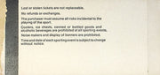 Product Condition Details: No year date on stub. Ticket stub is in good condition. Does have some wear and tear around corners/edges. Minor fading and discoloration. Please see photos.