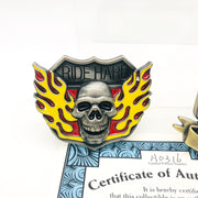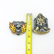 Product Details: These belt buckles are from The Bradford Exchange "Ride Hard, Live Free" belt buckle collection. Limited edition number A0316. Titled "Flaming Skull" and "V-Twins".